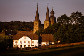 Auf der letzten Etappe geht es durch das Naturschutzgebiet Räuschenberg und die Fachwerkstadt Höxter bis nach Corvey. Das imposante Westwerk bildet den eindrucksvollen Schlusspunkt des Weges.